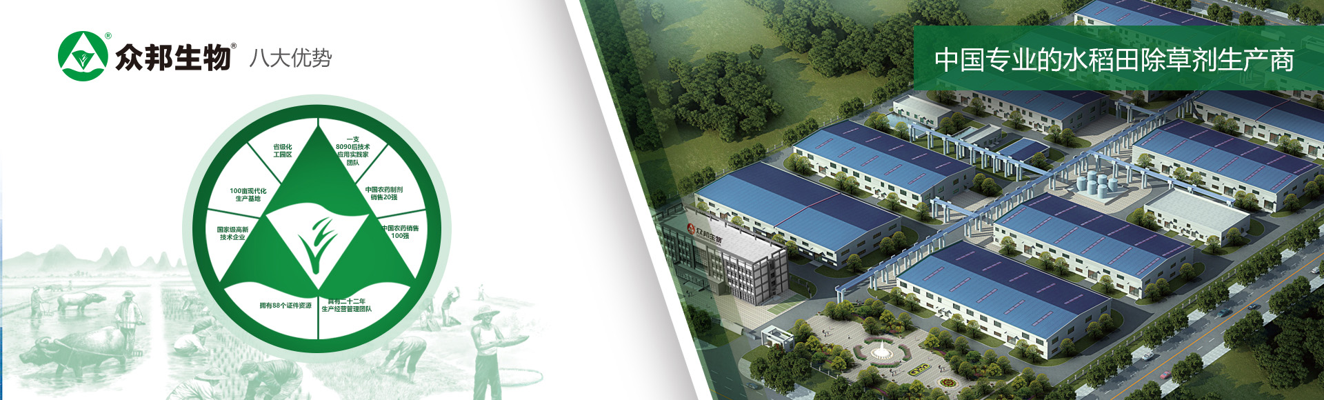 安徽眾邦生物工程有限公司成立于1997年12月。公司以新型生物農(nóng)藥為主導(dǎo),兼顧生化復(fù)配和化學(xué)復(fù)配劑型農(nóng)藥研發(fā)、生產(chǎn)、銷售與應(yīng)用技術(shù)服務(wù)。